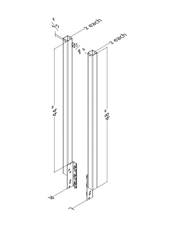 - HSS SQ. 2” x 2” x .100W x 48” welded to front face of Unirack beam bracket