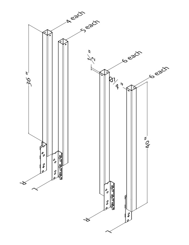 - HSS SQ. 2” x 2” x .100W x 40” welded to side face of Unirack beam bracket